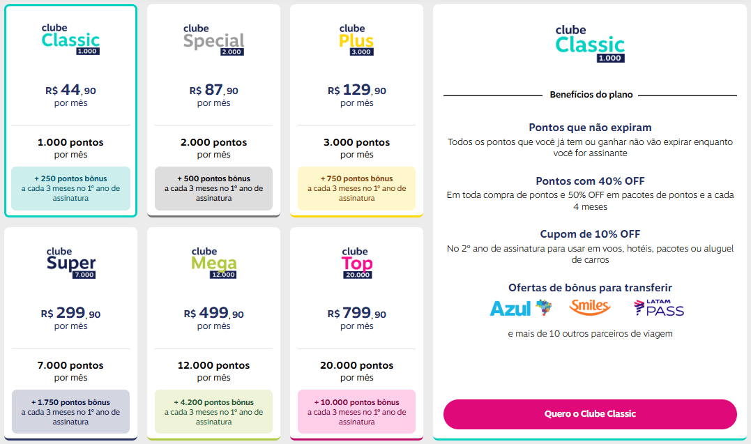 Além do acúmulo, o clube também amplia o poder de uso dos pontos. Assinantes têm acesso a descontos exclusivos em passagens aéreas, hospedagens e produtos, além de campanhas especiais para acelerar ainda mais o saldo.