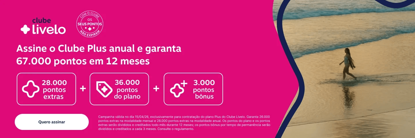 A Livelo está promovendo a assinatura do Clube Livelo Plus anual, com destaque para o acúmulo total de 67.000 pontos ao longo de 12 meses. A campanha tem condições específicas e distribuição detalhada dos pontos — e entender isso faz toda a diferença antes de assinar.