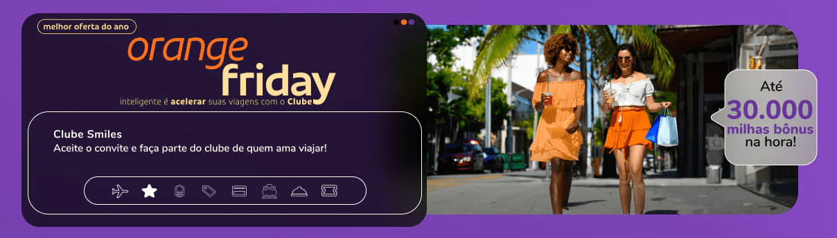 Clube Smiles oferece até 30.000 milhas bônus na Orange Friday para novos assinantes indicados