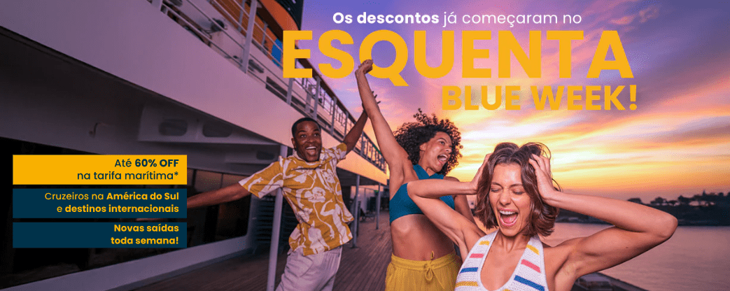 Cruzeiros de 4 dias a partir de R$ 1.638 por pessoa no Esquenta Blue Week da Costa