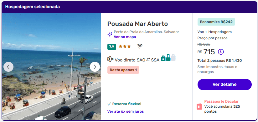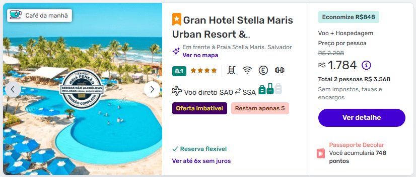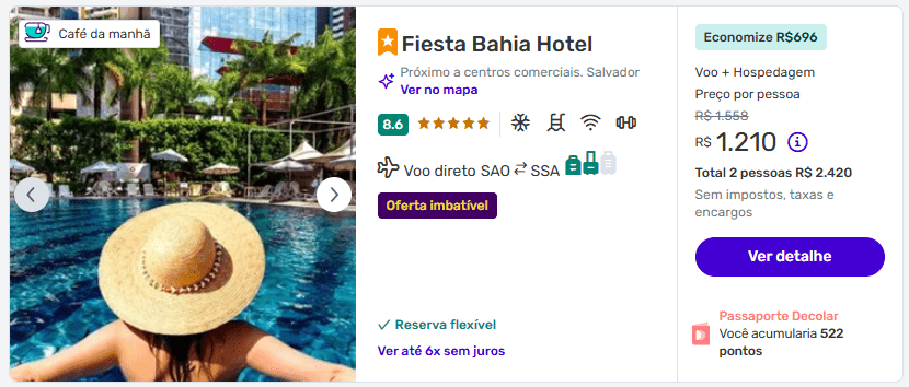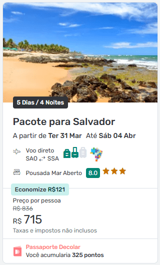 Para quem busca pacote completo, com voo direto e hospedagem em Salvador, essa é uma oferta muito competitiva para 2026 — especialmente considerando o custo médio das passagens aéreas para o Nordeste.