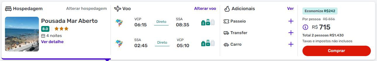 👥 Total para 2 pessoas a partir de R$ 1.430 + taxas