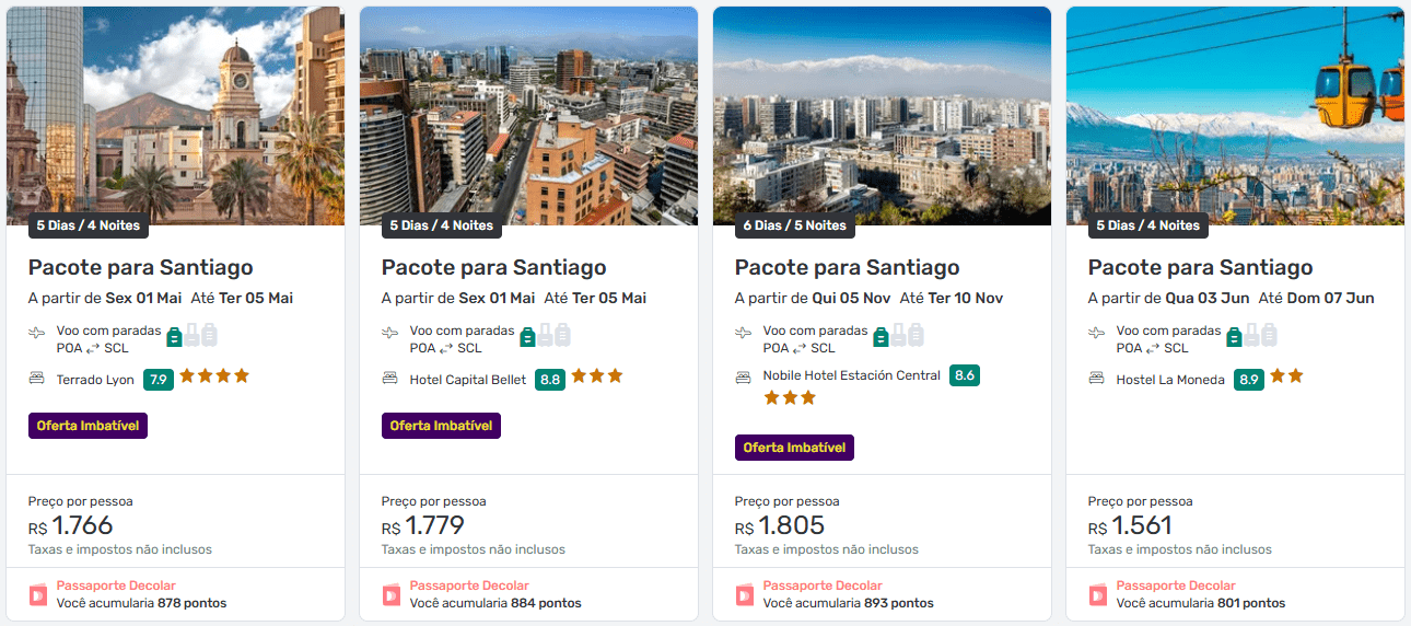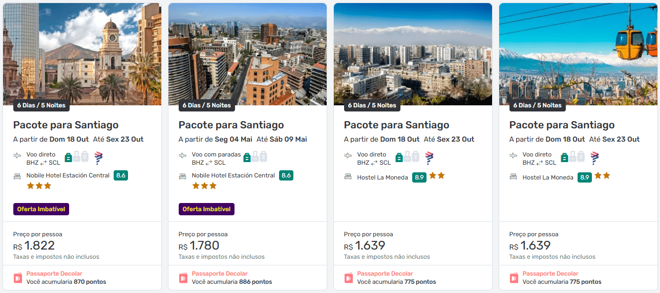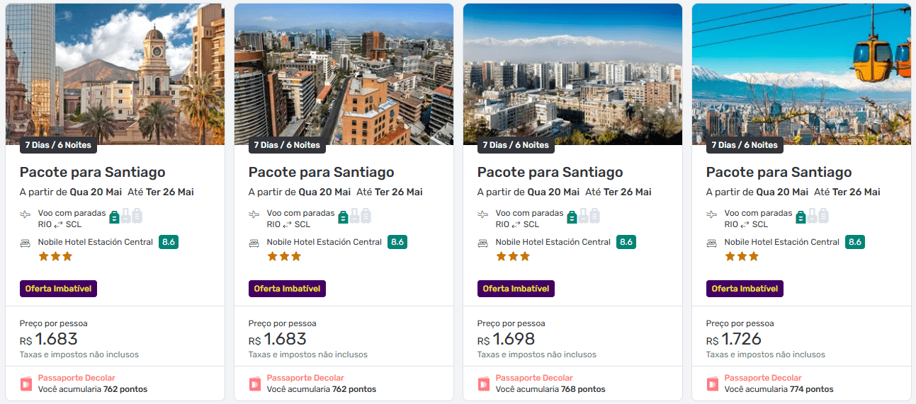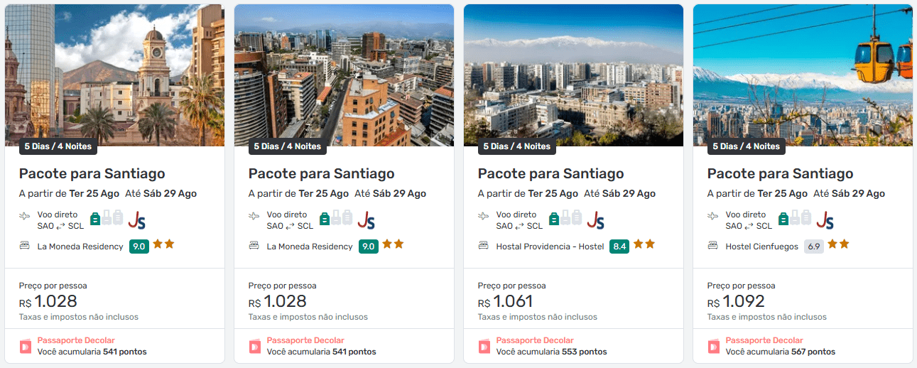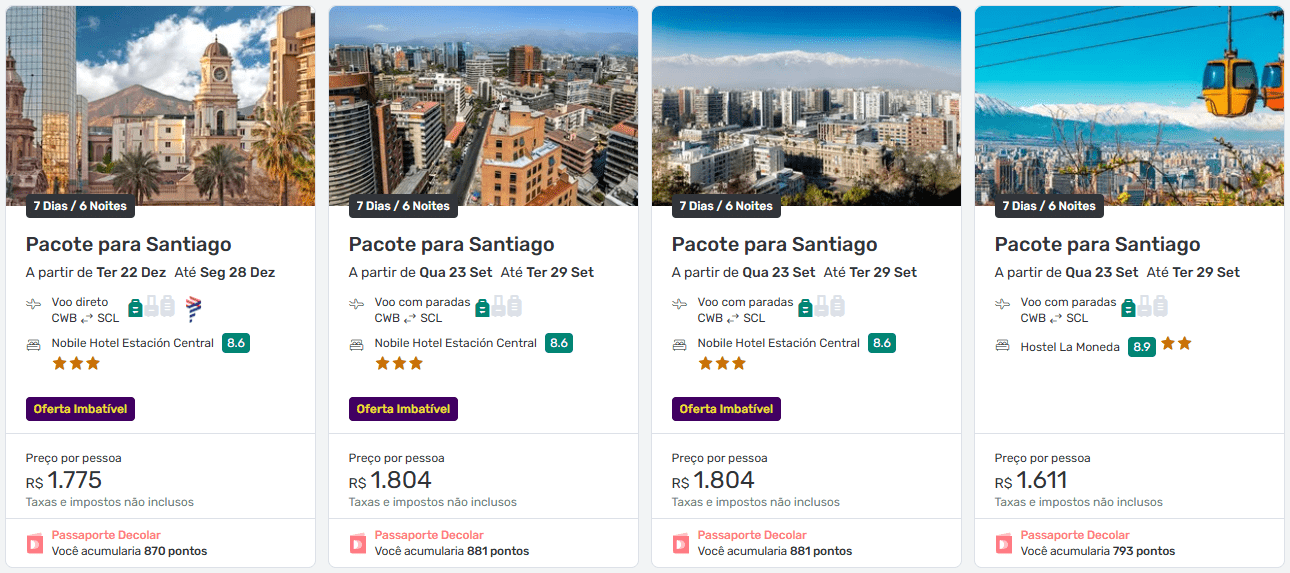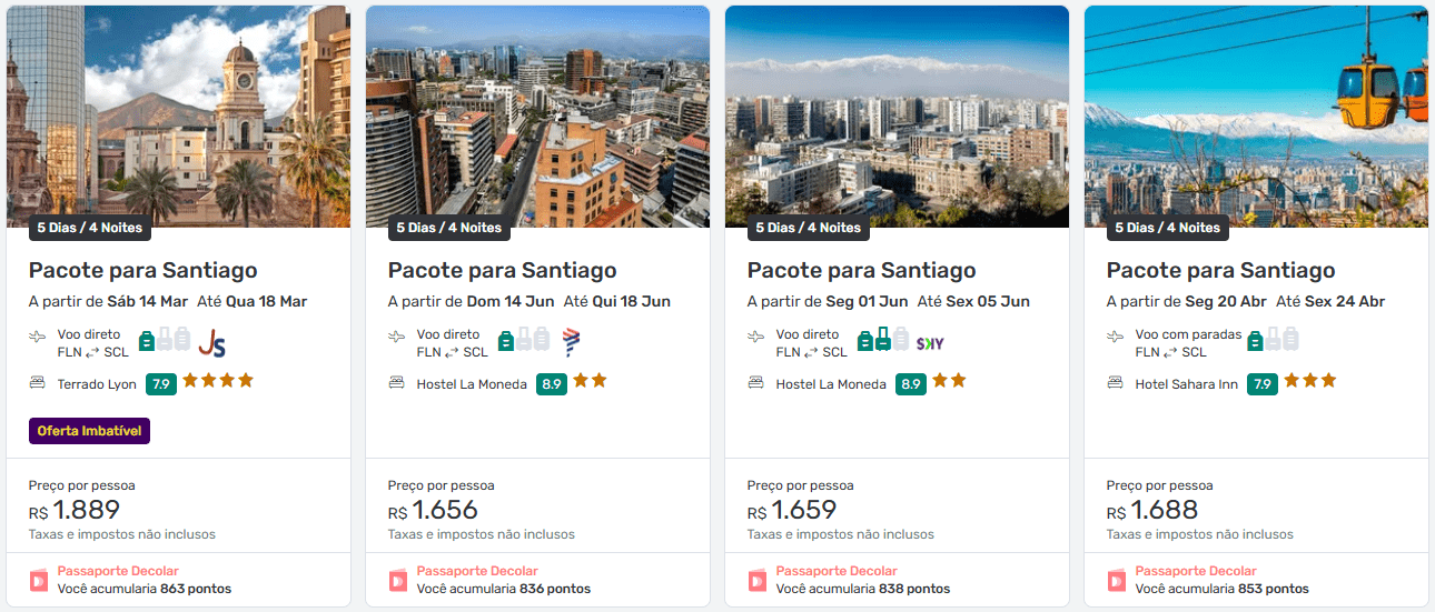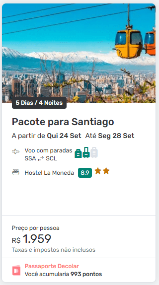 Quanto custam os pacotes para Santiago?