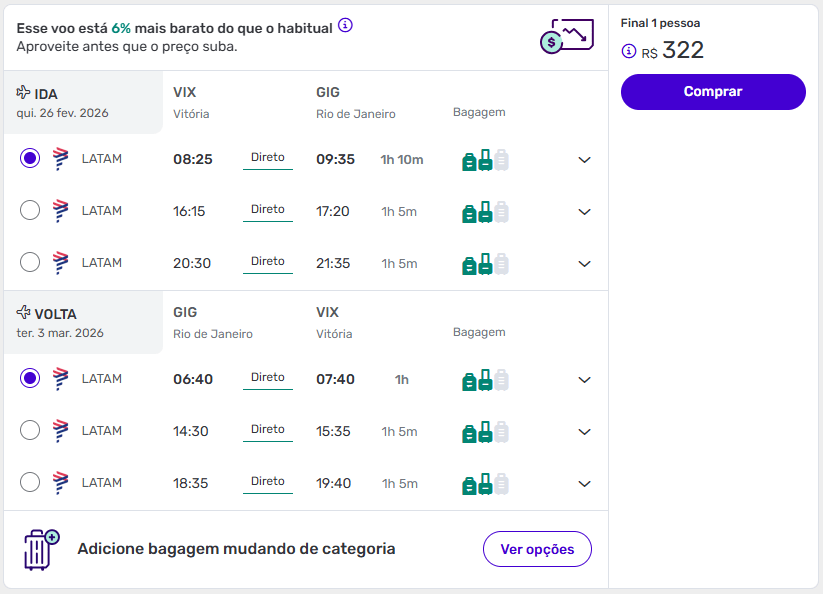Passagens de Vitória para o Rio de Janeiro a partir de R$ 322 ida e volta