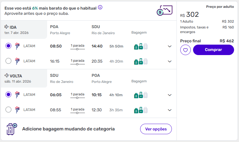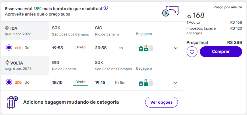Neste momento, março e abril são os meses que estão com as melhores ofertas para embarcar para o Rio.