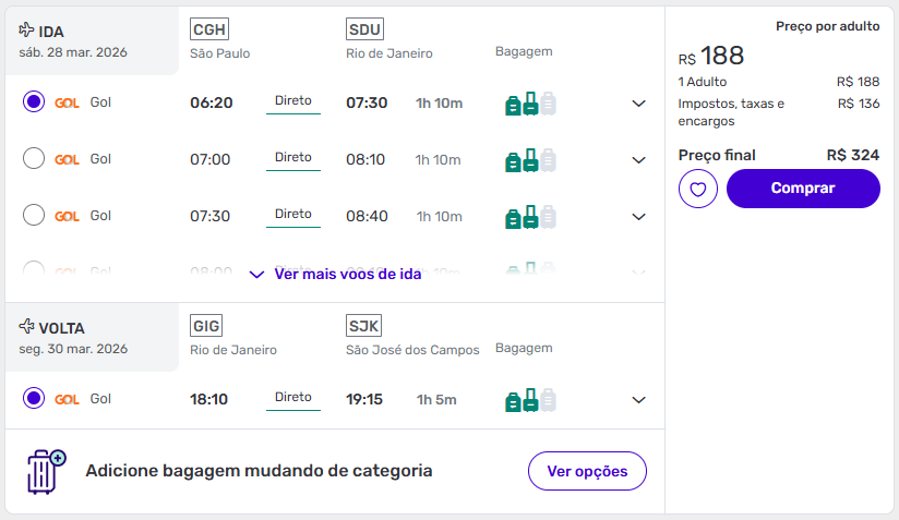 Passagens de São Paulo para o Rio de Janeiro a partir de R$ 324 ida e volta