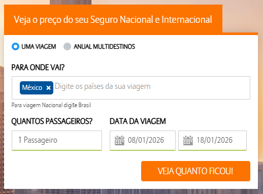 O processo é simples e totalmente on-line. Ao acessar o site da seguradora, o viajante informa o destino, as datas da viagem e o número de passageiros. Em seguida, os planos disponíveis já aparecem com os valores promocionais aplicados.