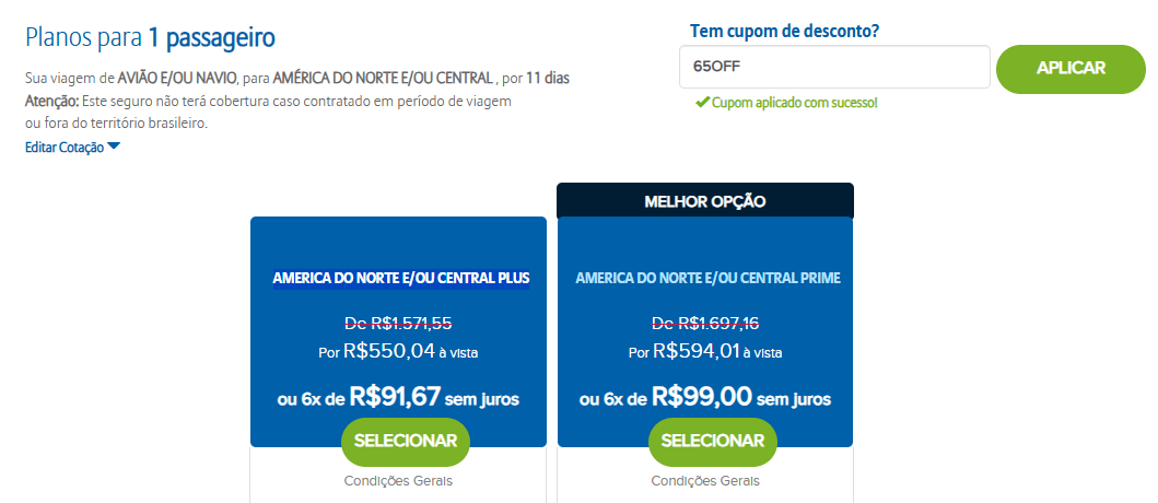 Mesmo existindo a referência ao código “65OFF”, o viajante não precisa aplicar nada manualmente. A própria plataforma da Allianz Travel reconhece a campanha e concede o abatimento automaticamente no momento da contratação.