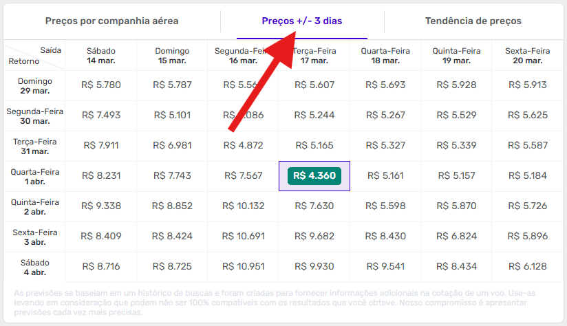 Para aumentar as chances de pagar menos, vale utilizar o calendário de 3 dias da Decolar.