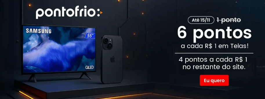 Ponto Frio: 6 pontos a cada R$ 1,00 em Telas e 4 pontos a cada R$ 1,00 no restante do site