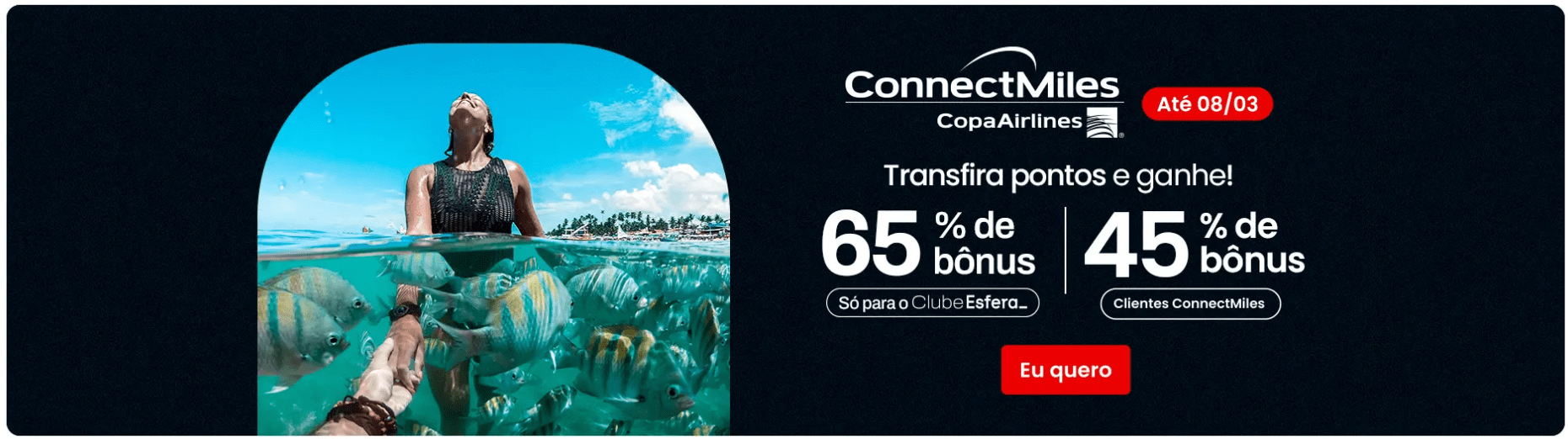- 65% de bônus para clientes ConnectMiles com assinatura ativa do Clube Esfera
