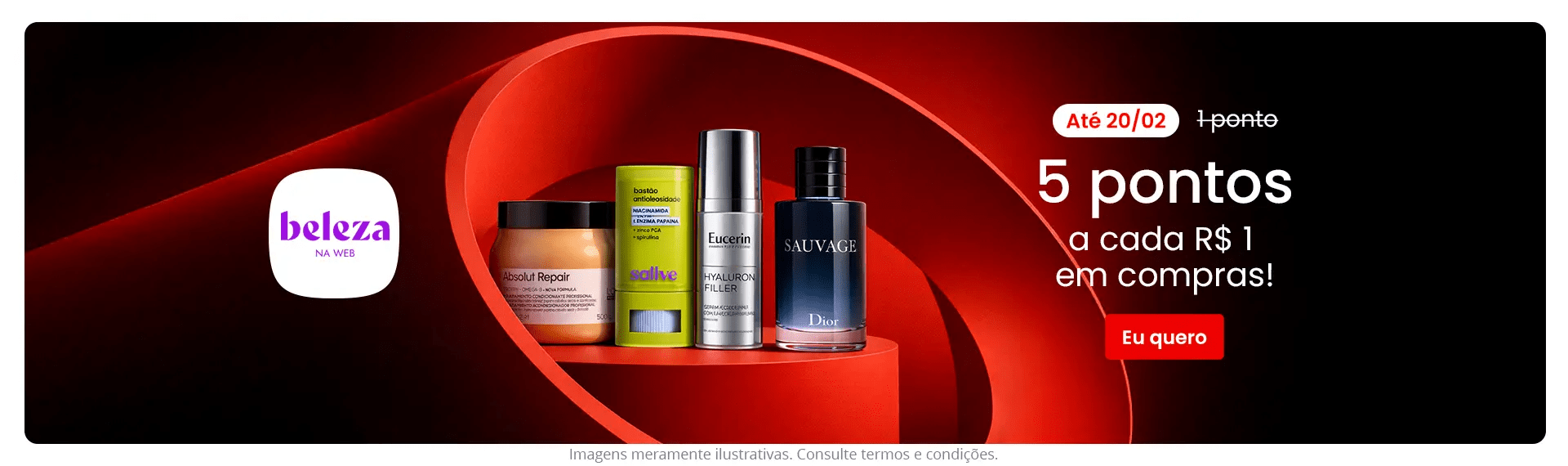 Beleza na Web: 5 pontos a cada R$ 1,00 em compras no site.