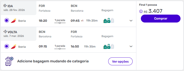 Passagens de ida e volta de Fortaleza para Barcelona a partir de R$ 3.407