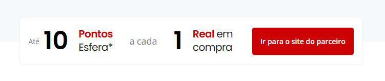 Casas Bahia: Clientes Clube Esfera: 7 pontos a cada R$ 1,00 em compras no site parceiro (6 pontos a cada R$ 1,00 para demais clientes).
