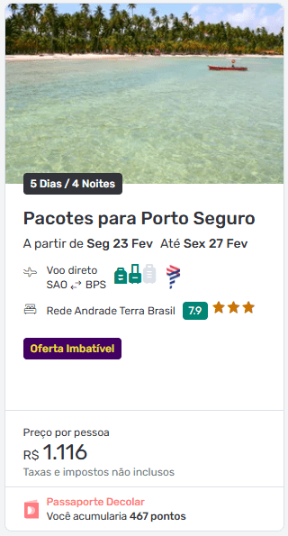 5 dias / 4 noites em Porto Seguro, na Bahia, no hotel Rede Andrade Terra Brasil com aéreo de ida e volta em fevereiro de 2026, em pleno verão, a partir de R$ 1.116 por pessoa, muito barato!