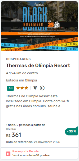 Olímpia (1 noite / 2 pessoas) a partir de R$ 361 (até 35% off)