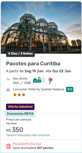 Curitiba (4 dias / 3 noites) a partir de R$ 350 por pessoa