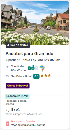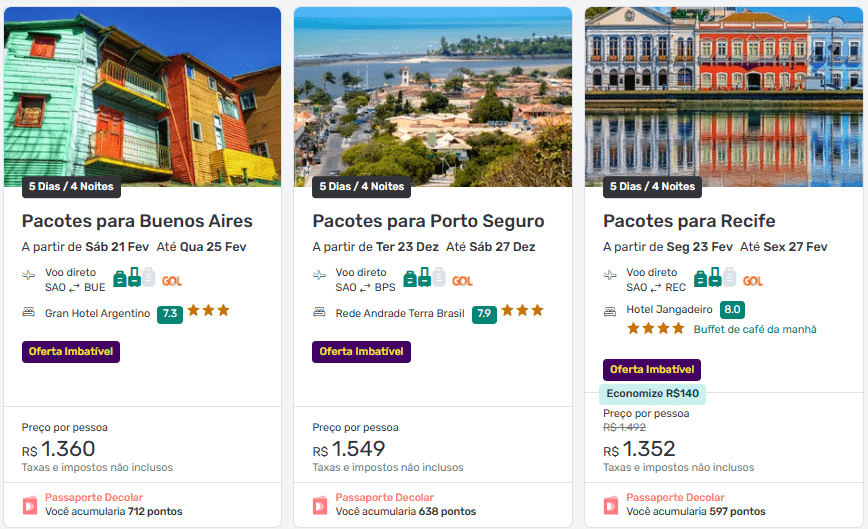 Importante: os preços vão mudando conforme os pacotes são vendidos. Caso não encontre alguma das ofertas que informamos aqui, ela pode não estar mais disponível.