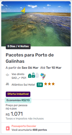 Porto de Galinhas (5 dias / 4 noites) a partir de R$ 1.071 por pessoa
