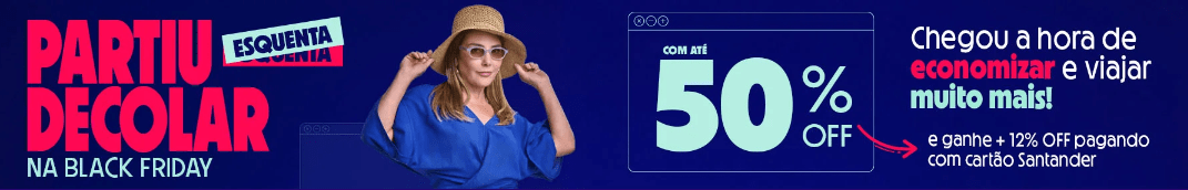 Além dos descontos de até 50%, quem utilizar o cartão Santander* para fazer sua reserva, até domingo, ainda ganha mais 12% de desconto na hora do pagamento.