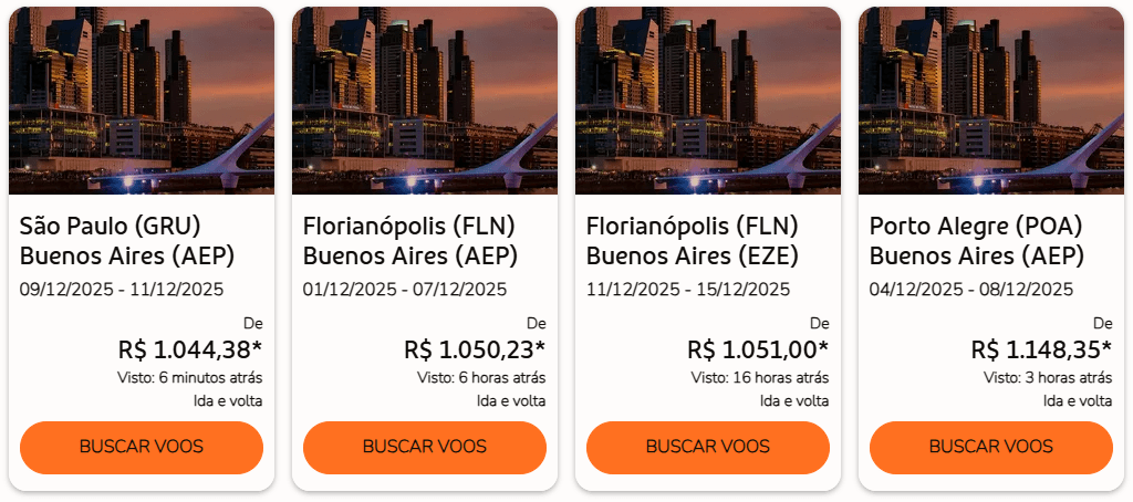 São Paulo (GRU) → Buenos Aires (AEP) – R$ 1.044,38 (09 a 11/12/2025)