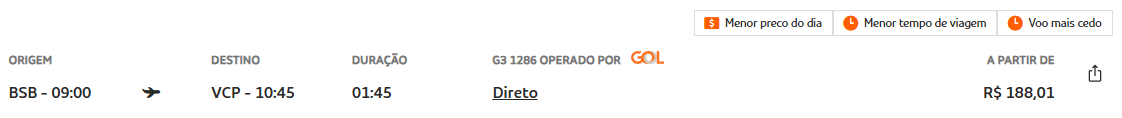 Brasília (BSB) → Campinas (VCP) – R$ 188,01 (07/12/2025)