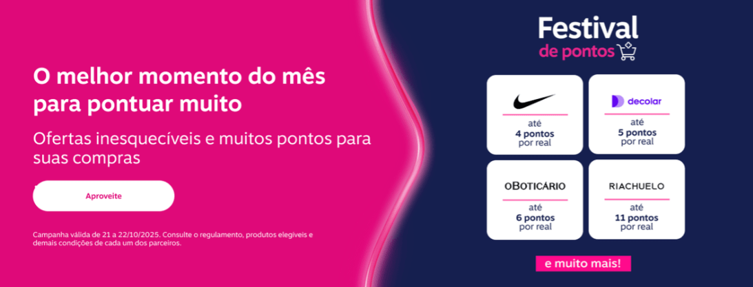 Festival de pontos Livelo oferece até 17 pontos por real gasto em parceiros