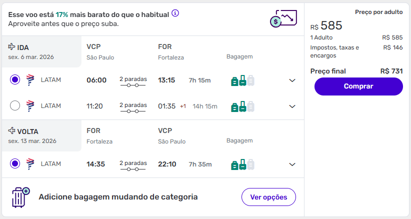 Voos de Campinas para Fortaleza a partir de R$ 731 ida e volta