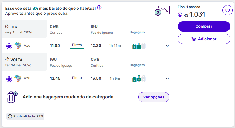 Curitiba → Foz do Iguaçu (preço competitivo)