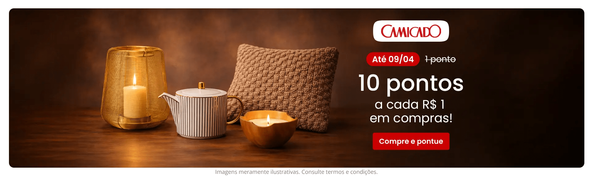 Camicado: 10 pontos a cada R$ 1,00 em compras do site.