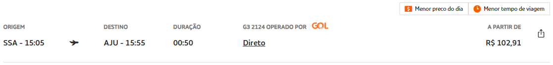 Salvador → Aracaju (MENOR PREÇO DO DIA)