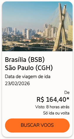 - A partir de R$ 164 no trecho Brasília (BSB) → São Paulo (CGH), com saída em 23/02/2026