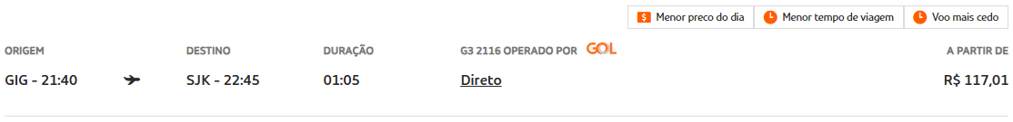 Rio de Janeiro (GIG) – São José dos Campos (SJK) a partir de R$ 117,01.