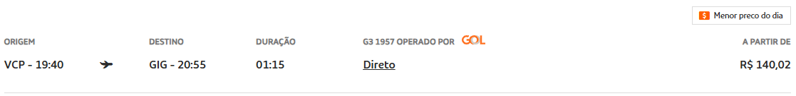 Campinas (VCP) – Rio de Janeiro (GIG) a partir de R$ 140,02.