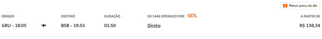 São Paulo (GRU) – Brasília (BSB) a partir de R$ 138,34.