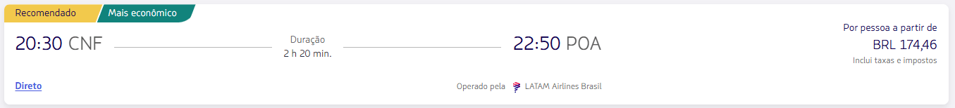 Belo Horizonte (CNF) – Porto Alegre (POA) a partir de R$ 174,46.
