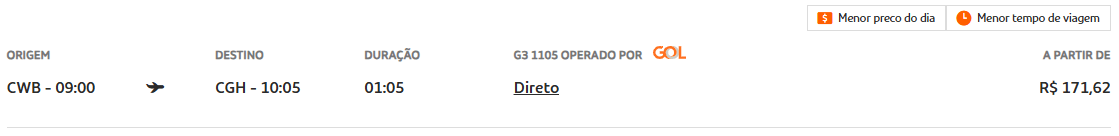 Curitiba (CWB) – São Paulo (CGH) a partir de R$ 171,62.