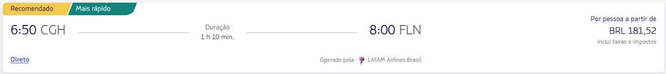 São Paulo (CGH) – Florianópolis (FLN) a partir de R$ 181,52.
