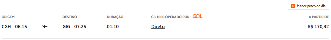 São Paulo (CGH) – Rio de Janeiro (GIG) a partir de R$ 170,32.