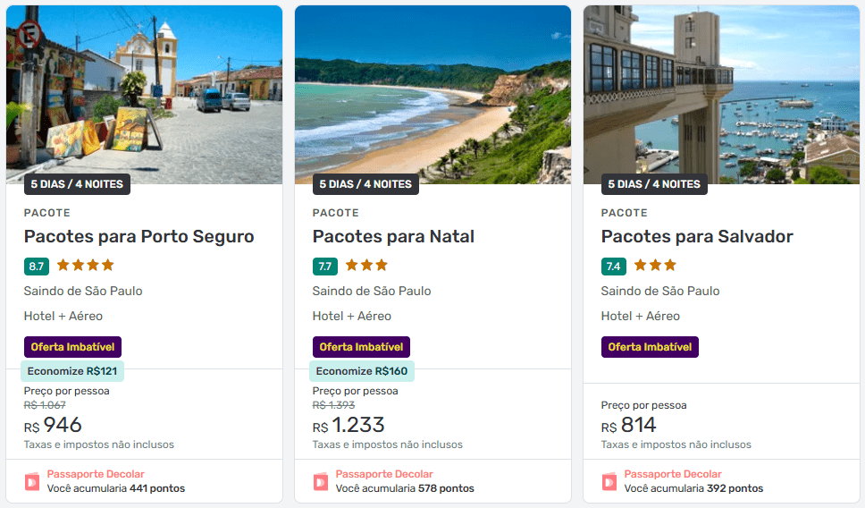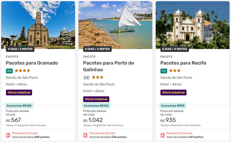 Já os pacotes da Decolar acabam se destacando para quem quer praticidade e, em muitos casos, conseguem entregar um custo-benefício interessante ao combinar voos + hotel.