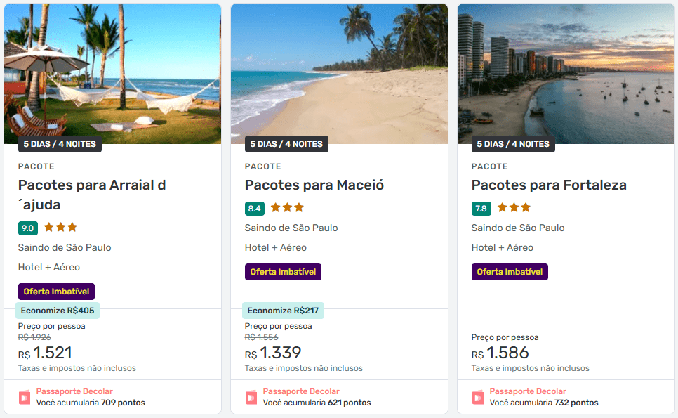 - Fortaleza: a partir de R$ 1.586 por pessoa + taxas