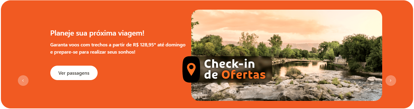 A GOL Linhas Aéreas acaba de lançar uma novíssima edição da promoção relâmpago de passagens aéreas nacionais e internacionais ‘Check-in de Ofertas’, nesta sexta-feira (7) com voos a partir de R$ 128,95 o trecho, com taxas inclusas, para viagens pelo Brasil, e a partir de R$ 1.064 ida e volta, com taxas inclusas, para viagens para o exterior.