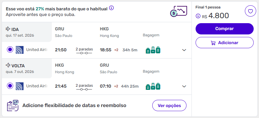 Há datas com valores até 9% mais baratos do que o habitual, o que é relevante para um destino de longa distância como Hong Kong, especialmente para embarques no segundo semestre de 2026.