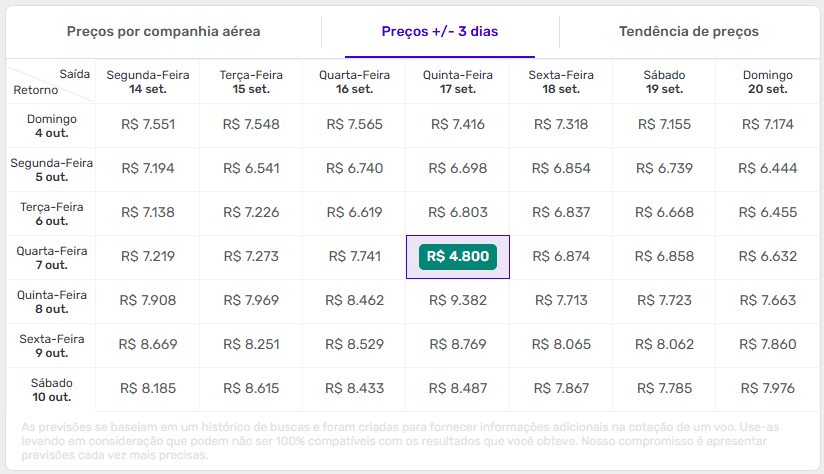 Vale usar o calendário de 3 dias da Decolar