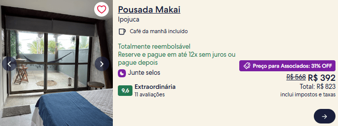 Além disso, o site permite o parcelamento em até 12 vezes sem juros, tanto para hospedagens no Brasil quanto no exterior.