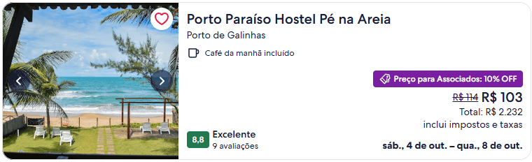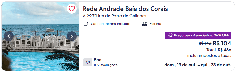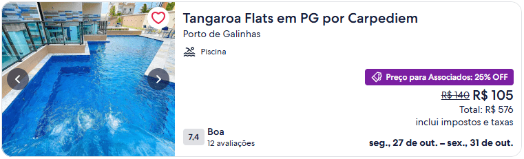 Há muitas outras ofertas de hotéis com preços baixos no site, tanto para Porto de Galinhas quanto para diversas outras cidades, estados e países. Vale a pena pesquisar com calma, porém é preciso ficar atento à validade das ofertas.