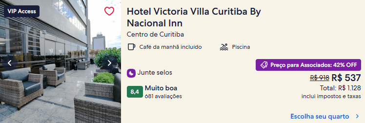 Entre as ofertas verificadas, há 60% no Búzios Mar Hotel, 42% no Hotel Victoria Villa Curitiba By Nacional Inn, 35% no Porto Kaeté Hotel, em Maceió, e muito mais!