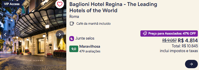 Quem pretende viajar para fora do país também encontra oportunidades expressivas. O President Hotel, em Miami, está com 51% de desconto e o Baglioni Hotel Regina – The Leading Hotels of the World, 5 estrelas em Roma, com 47%.