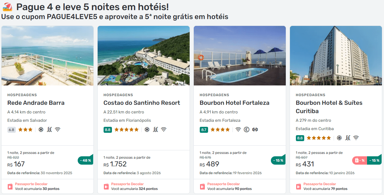 🏨 Como funciona a promoção Pague 4 e leve 5 noites
