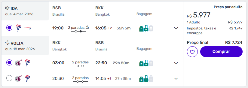 Hoje (28/10) encontramos preços excelentes em passagens aéreas de ida e volta para Bangkok, com diversas datas para embarcar desde o início de 2026.